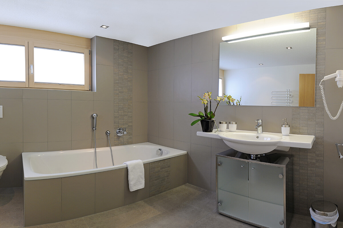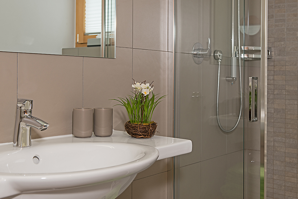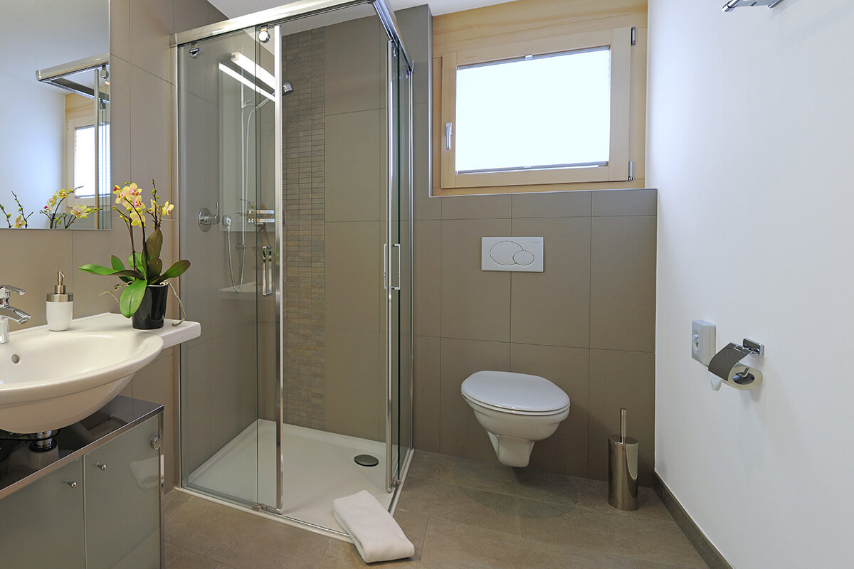 Jede Wohnung verfügt über ein Badezimmer mit Bad/WC sowie eine separate Dusche/WC.