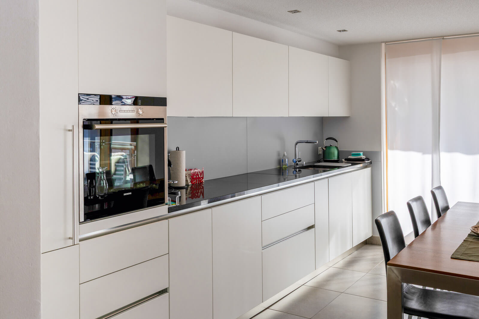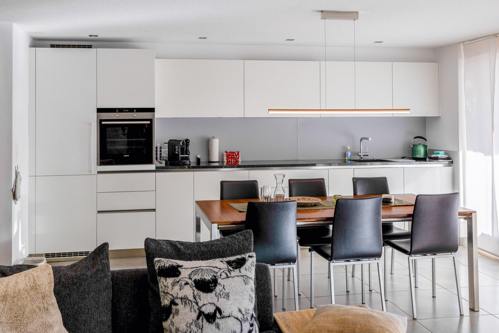 Die Küche ist vollständig ausgestattet mit Backofen, Geschirrspüler, Nespresso-Maschine, Mikrowelle sowie Fondue- und Raclettset.